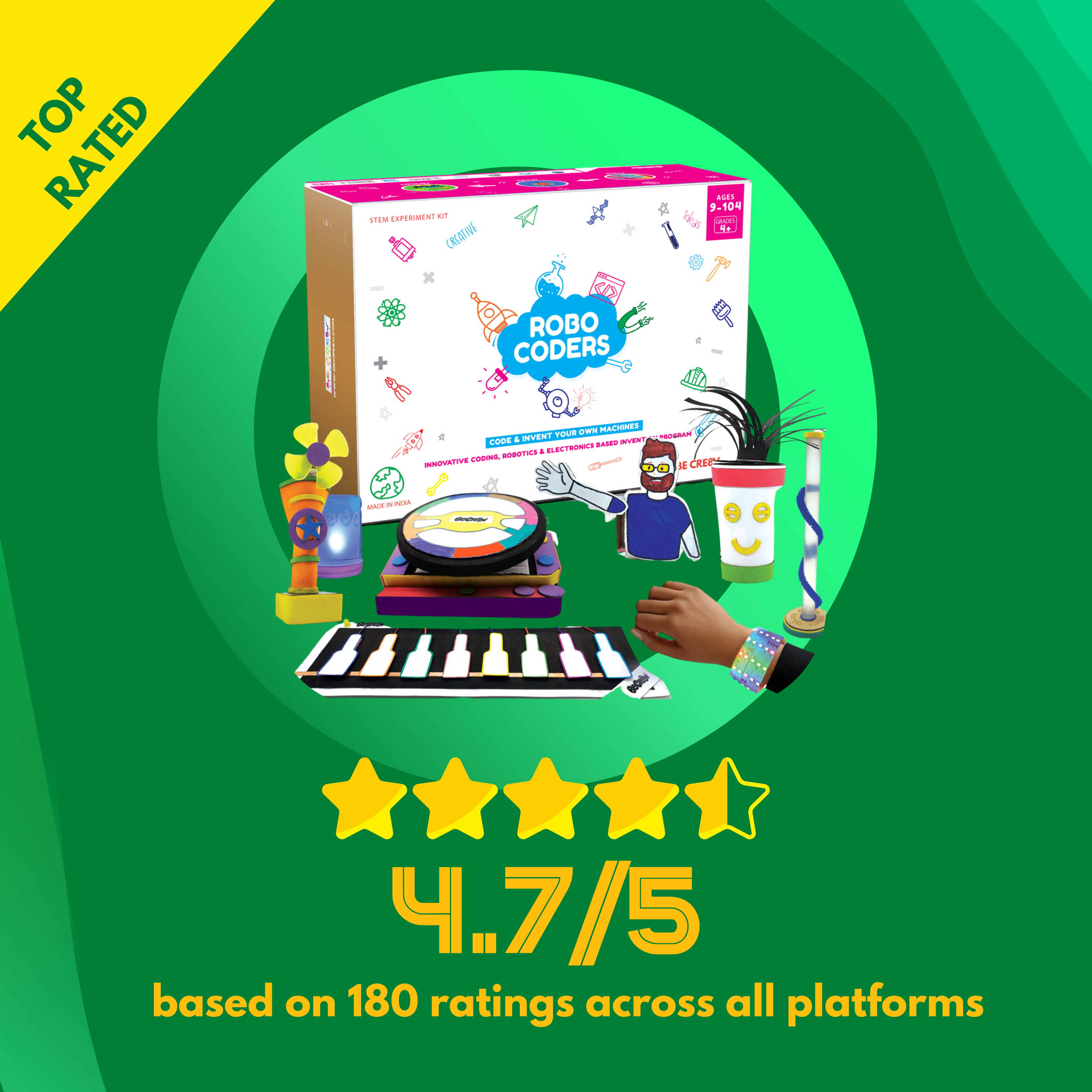 Robocoders Coding Invention STEM Kit | 30+ Experiments | Scratch block coding | 8-14 years